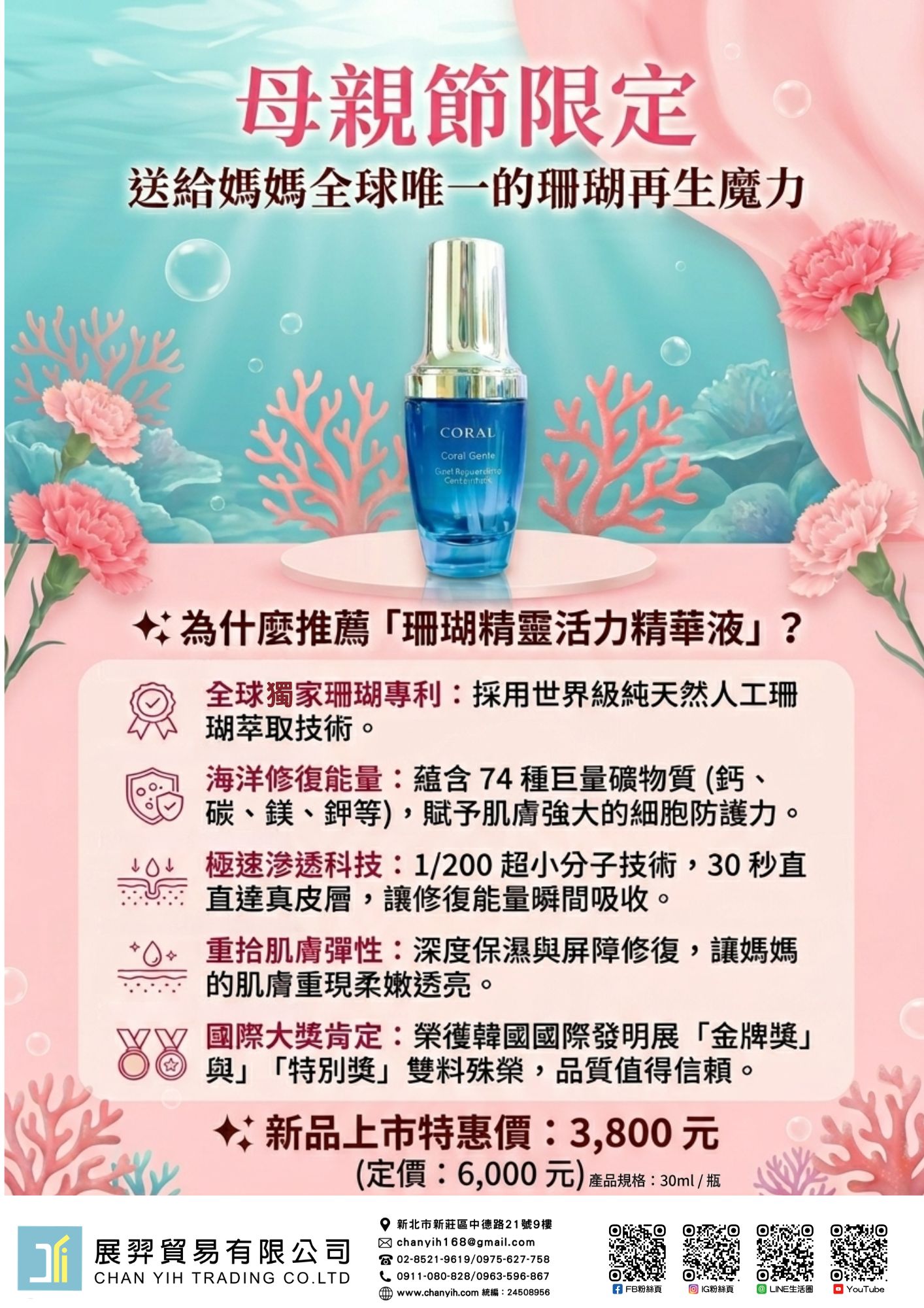 【獨家專利】 世界級人工珊瑚萃取,是全家人舒緩乾燥、找回肌膚防禦力的救星。